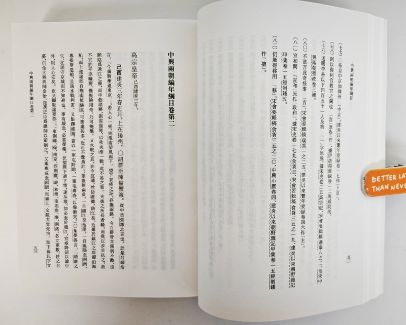 《中興兩朝編年綱目》十八卷,以纲目体记述南宋高宗和孝宗两朝史事,传本稀见,对研究南宋初期的政治、军事等具有重要文献价值。此次点校整理,以国图藏十八卷本 (《中华再造善本》影印本)为底本,以旧抄本(《原国立北平图书馆甲库善本丛书》影印本)通校,同时参校《中兴小历》《建炎以来系年要录》《三朝北盟会编》和相关宋人文集、笔记等。