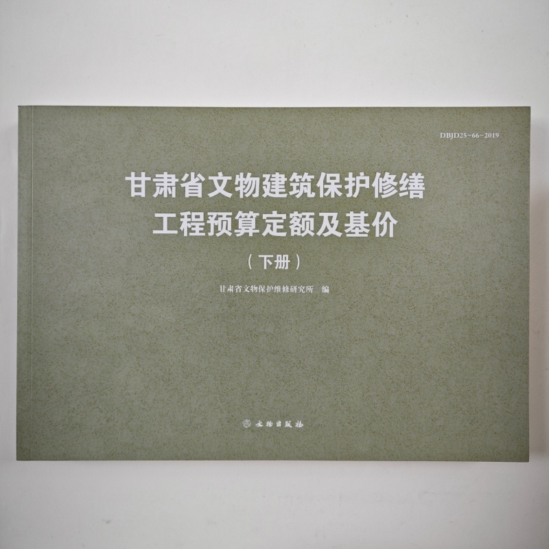 《甘肃省文物建筑保护修缮工程预算定额及基价》共分12章以及附录,含4822个子目,分上、中、下三册,涵盖了文物建筑保护修缮工程中的土石方及基础加固工程、石作工程、砌体工程、地面工程、屋面工程、抹灰工程、木构架及木基层工程、斗拱工程、木装修工程、油饰彩绘工程、材料运输、措施项目等内容,附录还明确了工程费用定额、灰浆配合比和北方地区青瓦、青砖常见规格尺寸、定额等内容。该项定额基价体现了“科学合理、反映实际、规则明晰、贴近市场、操作性强、体现甘肃特色、满足计价需要”的原则,突出反映了甘肃地方文物建筑特点和甘肃社会消耗量水平,为规范实施全省文物建筑保护修缮工程提供了依据和指导,施行后将进一步提升全省文物建筑保护修缮工程科学化、标准化、规范化水平。