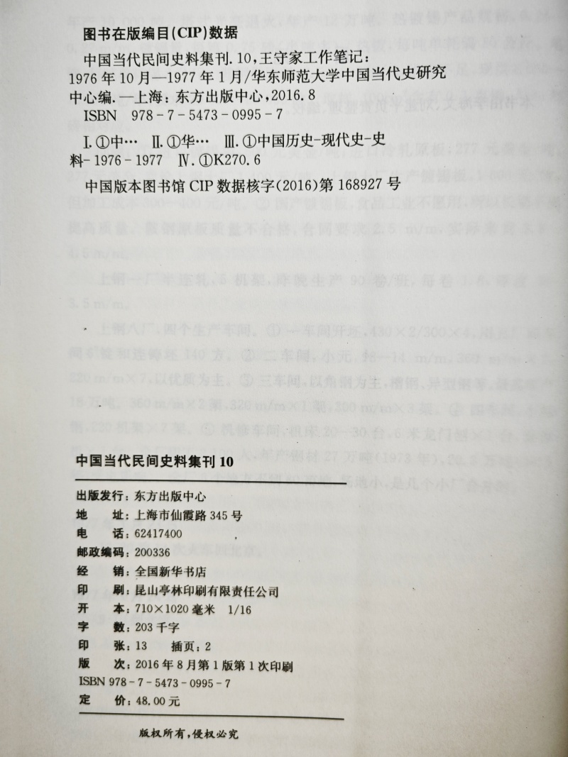 这份详尽的日记就是王守家同志1976年10月至1977年1月期间的工作笔记,由华东师范大学中国当代史研究中心主持整理。