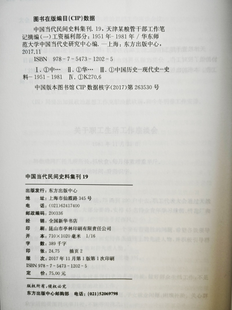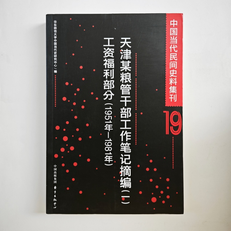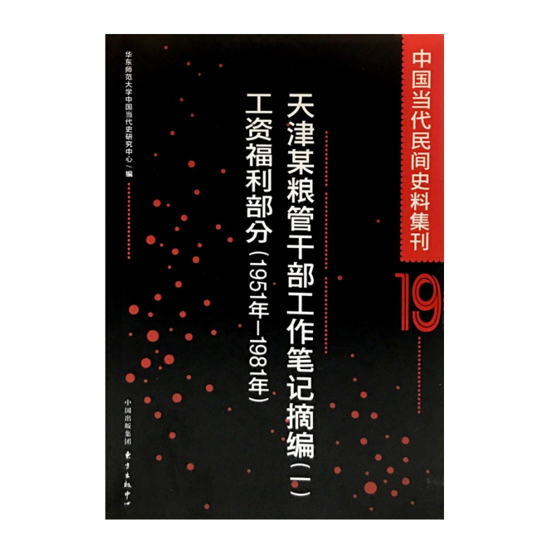 “天津某粮管干部工作笔记”是华东师范大学中国当代史研究中心出资从民间收购得来,时间总跨度达三十余年,内容十分博杂,不仅有该粮食局内部经营业务、党政工作、机构变动、人事考核奖惩等等内容,还包括该粮食局传达贯彻中央和天津市有关会议精神的记录,反应了该单位在各个时期贯彻中央和地方各项政策的情况,以及该单位和社会不同方面、不同侧面的联系。本书是其工作笔记中1951年至1981年关于工资福利部分的摘编。