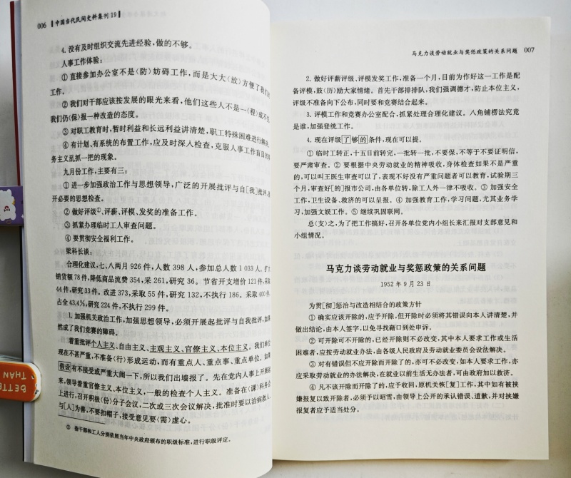马克力谈劳动就业与奖惩政策的关系问题(1952年9月23日)