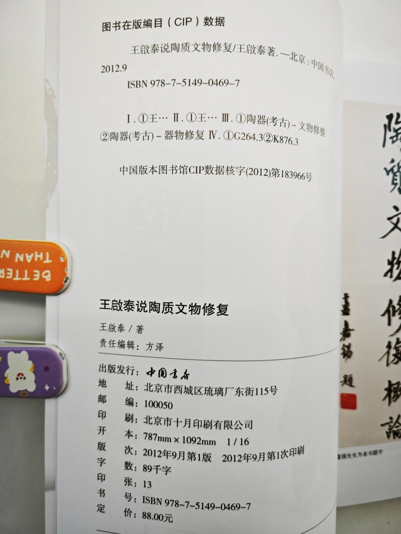 王啟泰是我国著名陶质文物修复和古瓷鉴定专家,本书是王先生提出的“陶质文物修复六步法”的理论和工艺规范的具体总结。