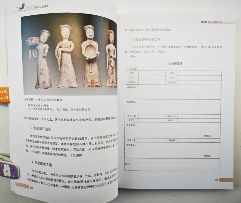 本书对陶质文物的修复理论、工艺实施等方面进行了比较系统的说明,分为陶质文物修复概论、陶质文物的分类、陶质文物修复中的清洁工艺、核拼工艺、粘接工艺、补配工艺、仿色工艺、做旧工艺以及文物包装等几个部分。