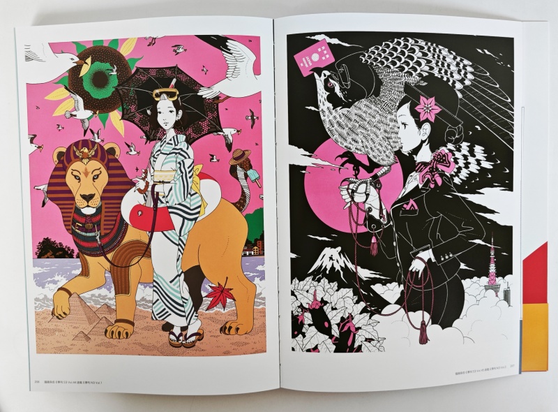中村佑介画风,既有大正昭和的旧时代版画韵味,又有新艺术风格般的轻盈想象力,构图大胆灵动,配色深具和风特色,“把以往视而未见的东西展示给我们看”,中村君就是能做到这一点的关键人物。