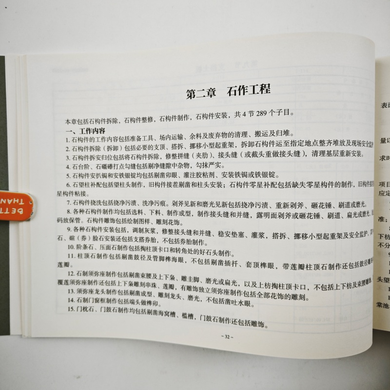 ★上册包括土石方及基础加固工程、石作工程、砌体工程、地面工程、屋面工程、抹灰工程,中册包括木构架及木基层工程、斗拱工程、木装修工程,下册包括油饰彩绘工程、材料运输、措施项目共12章