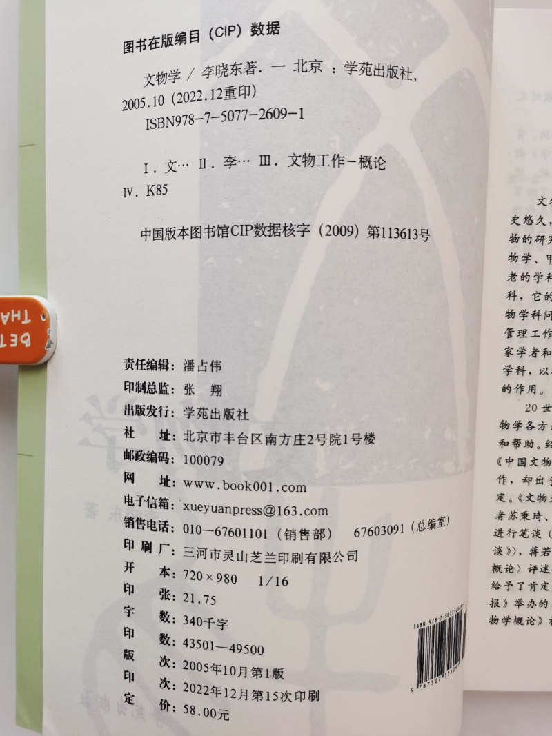 本书一直被用作高等院校历史专业教材,并被大部分院校指定为考古和文物博物馆学硕士研究生入学考试的参考教材。本书在《文物学概论》(曾获20世纪中国文博考古最佳图书)的基础上补充完善而成。内容包括文物学概述、文物研究与文物学的历史发展、文物学与相关学科、文物定名、文物分类、文物鉴定、文物价与作用、古器物、古书画、古文献、古代文化史迹、近代现代文物文物保护管理、文物保护技术、21世纪的文物学等,对文物学这一学科进行了全面的阐述。