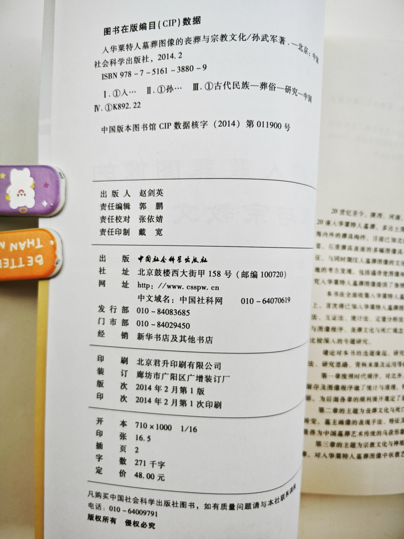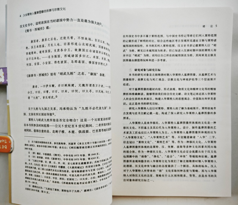 二十世纪至今,陕西、河南、宁夏、甘肃、山西等省考古新发现了近二十座入华粟特人墓葬,多出土围屏石榻、石堂或石椁等葬具。加之流失海内外的葬具构件,目前已知北朝隋唐时期的入华粟特人石质葬具近二十套。石质葬具表面的多幅图像具有内容丰富、雕绘精细、装饰奢华等特征,与同时期汉人墓葬图像的文化风格和审美旨趣有着明显差异。粟特故地的考古发现,包括盛骨瓮图像和庙宇、宫殿、宅邸壁画,为我们深入研究入华粟特人墓葬图像提供了参照系。孙武军编著的《入华粟特人墓葬图像的丧葬与宗教文化》在全面搜集入华粟特人墓葬图像和消化吸收相关研究成果的基础上,运用图像细读法、互证法、统计法、定量分析法、综合法等多种研究方法,对北朝隋唐时期入华粟特人墓葬图像做了多角度、多层次的解读和诠释。