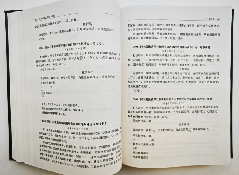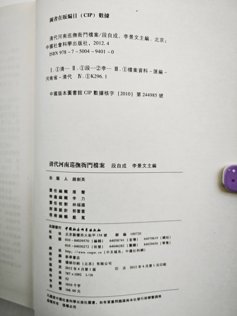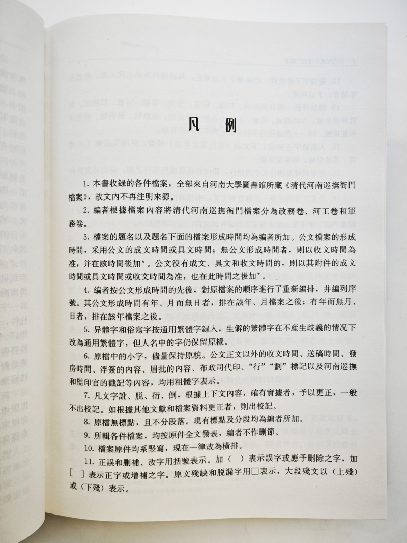 《清代河南巡抚衙门档案(全绿书脊)》的整理主要包括以下工作:一、复制档案;二、对档案进行录入和校对;三、对档案进行题名、标点和校勘;四、对档案进行分类、编目。王学春负责全部档案的复制,王会丽、裴丹青、马珂、朱腾云、尼志强、于兆军、姬志香等负责档案的录入、校对和试标点,段自成、李景文、王学春对全部档案进行题名、标点、校勘、分类和编目。这一项目的完成,得到河南大学图书馆和河南大学科研处的大力支持。
