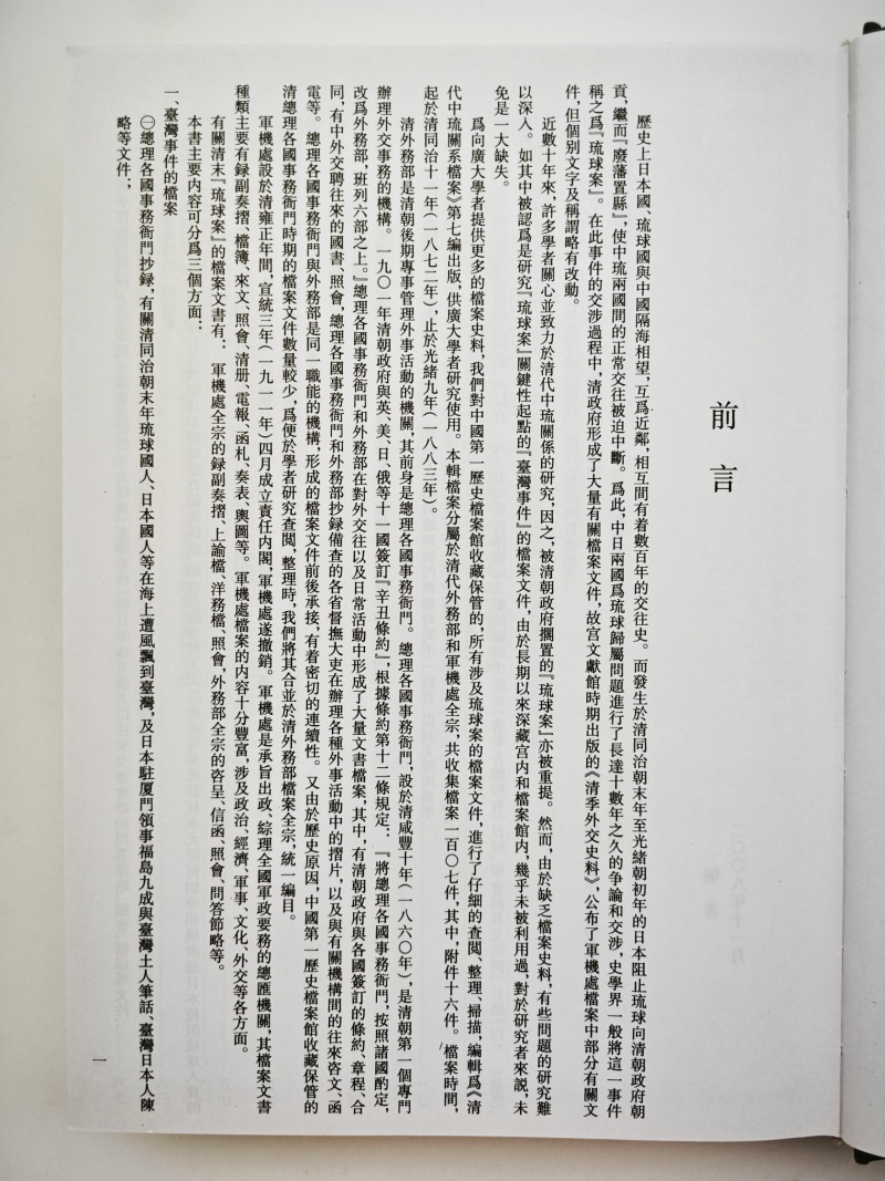 历史上日本国、琉球国与中国隔海相望,互为近邻,相互间有着数百年的交往史。而发生于清同治朝末年至光绪朝初年的日本阻止琉球向清朝政府朝贡,继而『废藩置县』,中琉两国间的正常交往被迫中断。为此,中日两国为琉球归属问题进行了长达十数年之久的争论和交涉,史学界一般将这一事件称之为『琉球案』。在此事件的交涉过程中,清政府形成了大量有关档案文件,故宫文献馆时期出版的《清季外交史料》,公布了军机处档案中部分有关文件,但个别文字及称渭略有改动。