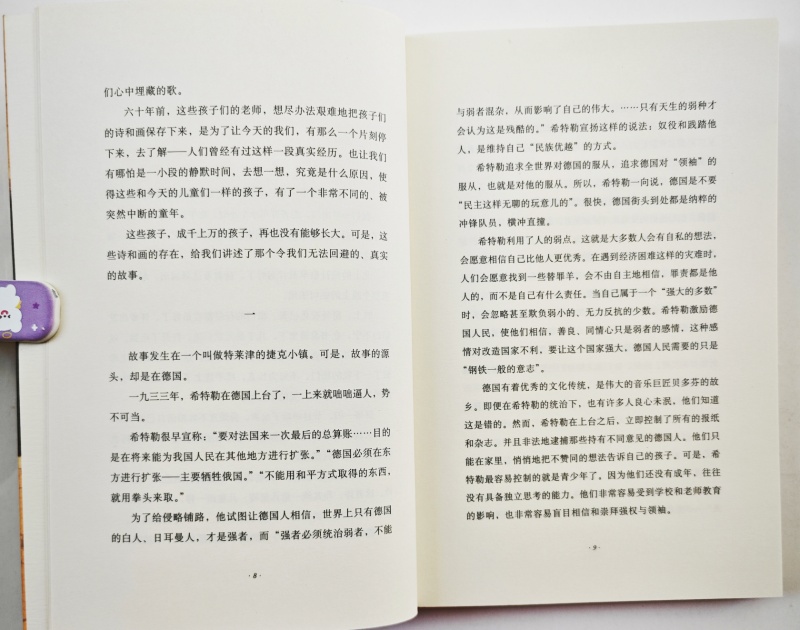 作者以数十幅“二战”中犹太人集中营被害儿童的幸存画作为主,围绕在苦难中坚守人的尊严、坚持美的创造和智慧的思考这一核心内容,讲述相关背景和有记载的人物及故事,内容涉及普通的犹太家庭、犹太儿童、犹太艺术家等大批浩劫受难者的遭遇和他们不懈的精神追求。六十年前,这些孩子们的老师,想尽办法艰难地把孩子们的诗和画保存下来,是为了让今天的我们,有那么一个片刻停下来,去了解——人们曾经有过这样一段真实经历。也让我们有哪怕是一小段的静默时间,去想一想,究竟是什么原因,使得这些和今天的儿童们一样的孩子,有了一个非常不同的、被突然中断的童年。这些孩子,成千上万的孩子,再也没有能够长大。可是,这些诗和画的存在,给我们讲述了那个令我们无法回避的、真实的故事。