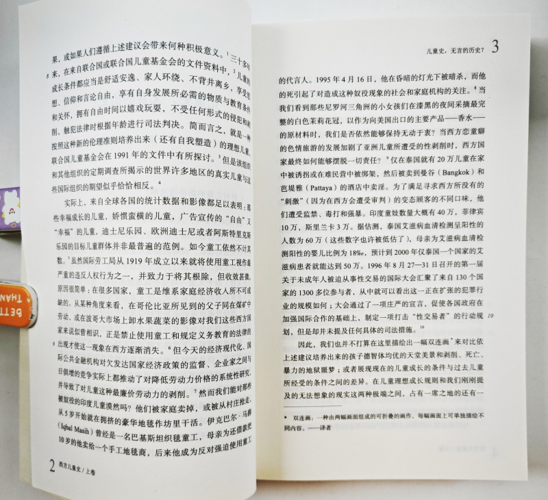 《西方儿童史》是一部以儿童研究为主题的论著,按时间顺序分为上下两卷,上卷从古代到17世纪,下卷自18世纪迄今。全书一方面从不同时期社会对儿童的不同定义及对待、年龄段的划分的变化、不同性别或不同年龄儿童的社会角色、儿童礼仪、家庭环境、学习规划、活动场所等角度,构成完整的儿童史框架;另一方面,以细节丰富、论证翔实的专题史形式,研究现代弃儿、儿童务工、残疾儿童等问题,深化了对西方儿童史重要主题的思考。