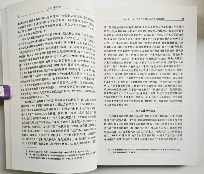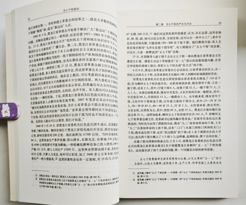 五七干校历史是“文化大革命”史的重要组成部分,也是中国当代教育史和中国共产党干部教育史的重要组成部分。这就决定了五七干校研究在上述领域研究中具有重大学术价值。然而,目前对它的研究还很薄弱,取得的成果也较少,还没有出版一部研究专著。基于此,加强五七干校的研究将有助于拓宽和深化“文化大革命”史研究,有助于加强和丰富中国当代教育史和中国共产党干部教育史的研究,同时对于深化毛泽东晚年思想研究也会大有裨益。另外,尽管到目前为止,知识青年上山下乡运动研究已经取得了丰硕的成果,但一直以来对五七干校中的知识青年鲜有研究。事实上,全国相当多的五七干校都有为数不少的知识青年,他们在组织管理、生活学习等方面有着自己的特色。加强五七干校的研究,无疑会进一步深化对知识青年上山下乡运动的研究。